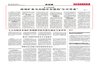 【中国有色金属报】奋斗绘就答卷 西部矿业交出稳中有进的“年中答卷”